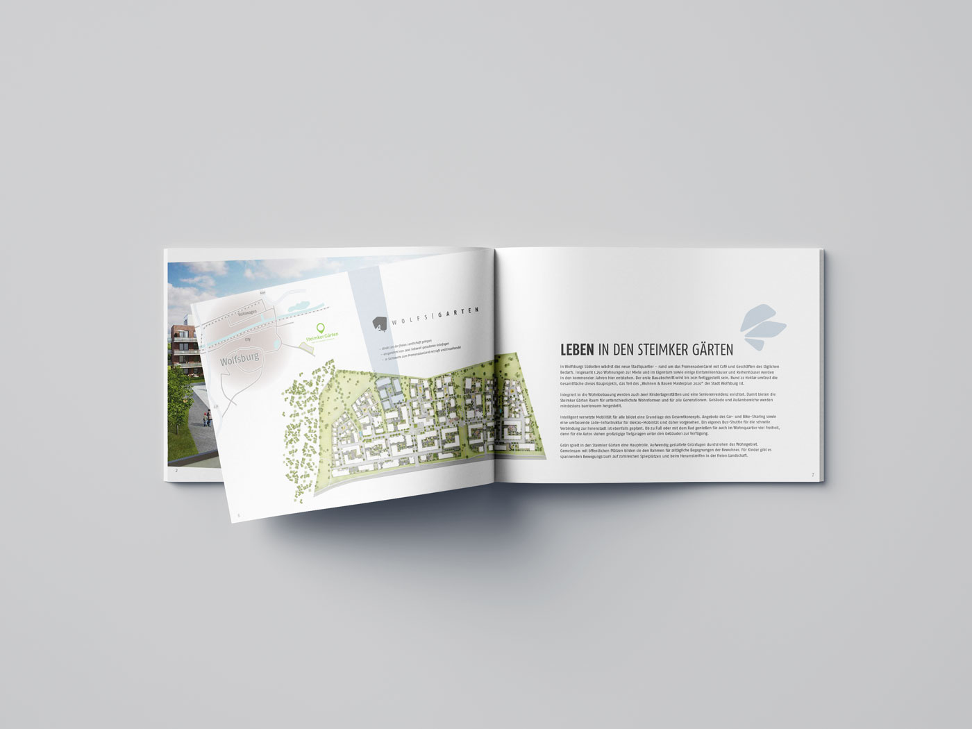 Für das Gebäude-Ensemble „Wolfsgarten“ (in Wolfburgs neuem Quartier Steimker Gärten) haben wir die Wort-/Bildmarke und das Corporate Design entwickelt, die sich in allen Vertriebsmedien wiederfinden.