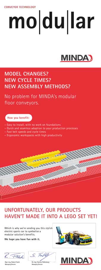 MINDA GmbH in Stadthagen bietet hierfür die passende Lösungen in den Bereichen Bodenfördertechnik, Dichtigkeitsprüf- und Fahrzeugaufbereitungsanlagen für die Automobilindustrie, sowie Wasch- und Fördertechnik für Waschanlagen, um nachhaltig ein Höchstmaß an Effizienz, Flexibilität und Ergonomie zu erzielen.